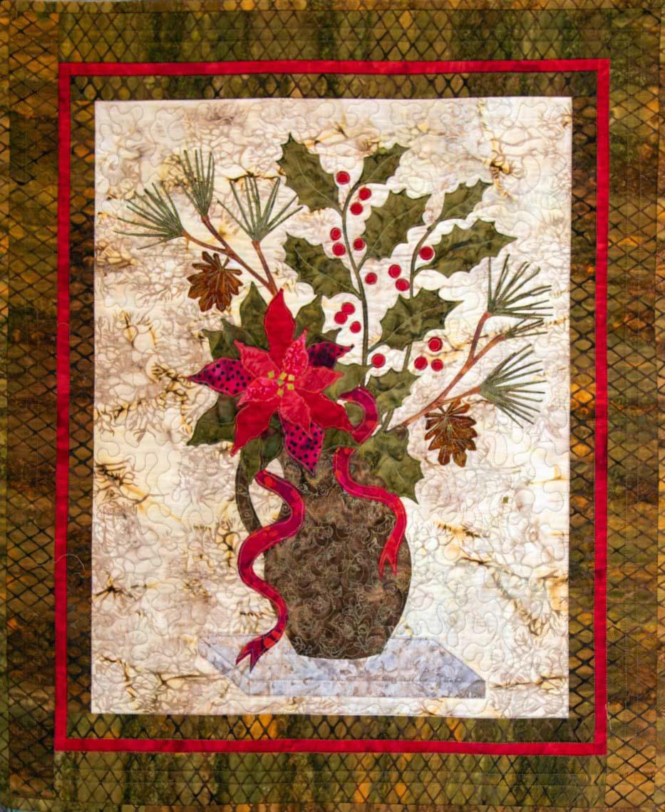 Ring in the holidays with this beautiful Poinsettia raw edge appliqué wall hanging quilt.