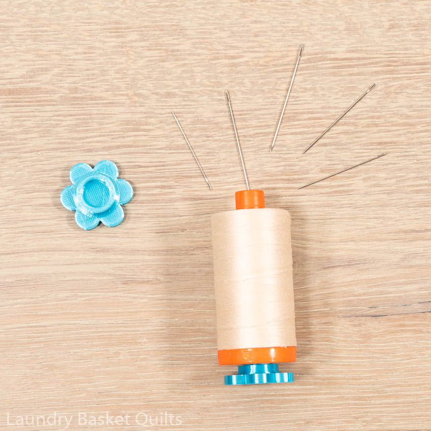 These cute Sew Daisy's are perfect for your Aurifil thread to create a small storage space in your spool for your needle, or any other little items you need for sewing on the go!