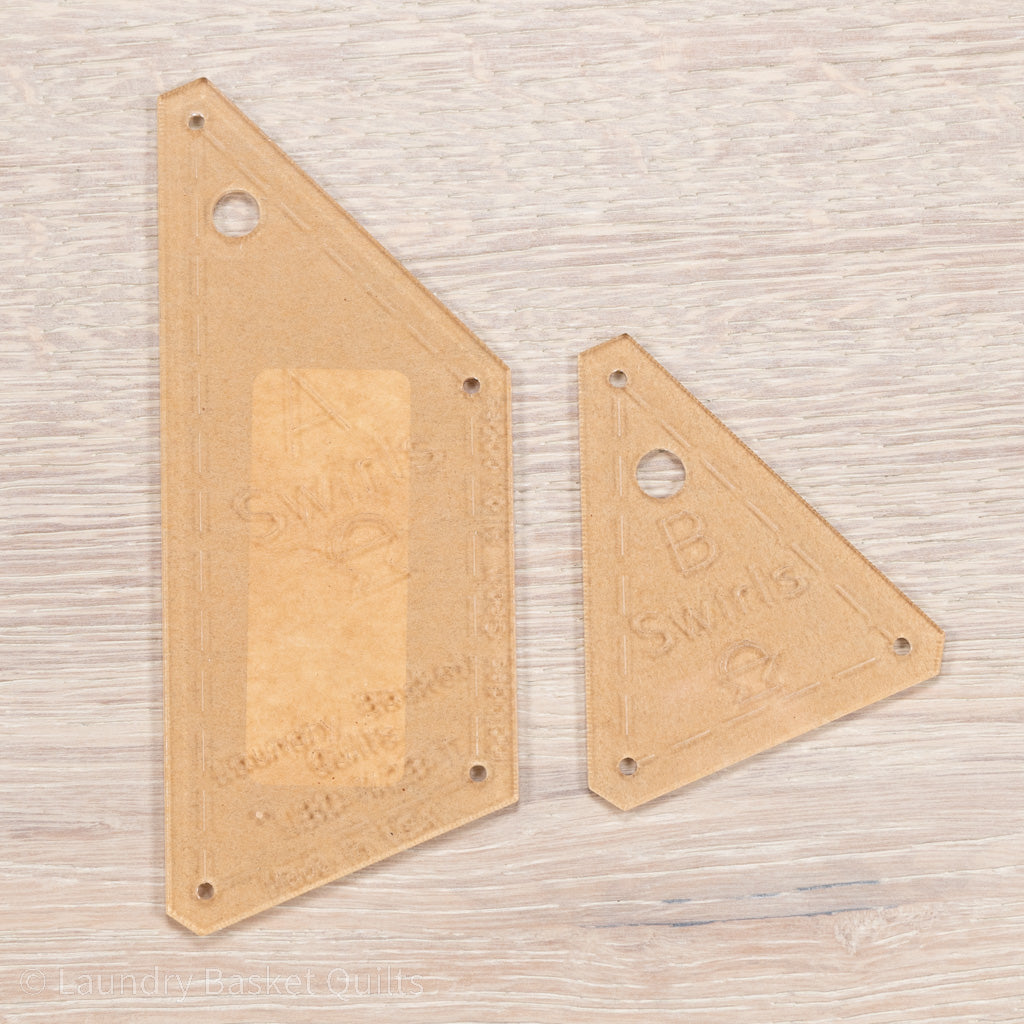 Acrylic Templates for our Swirls pattern are the perfect addition to make the cutting fun and easy! The templates are marked with a ¼" seam allowance points for easy marking and matching pieces.