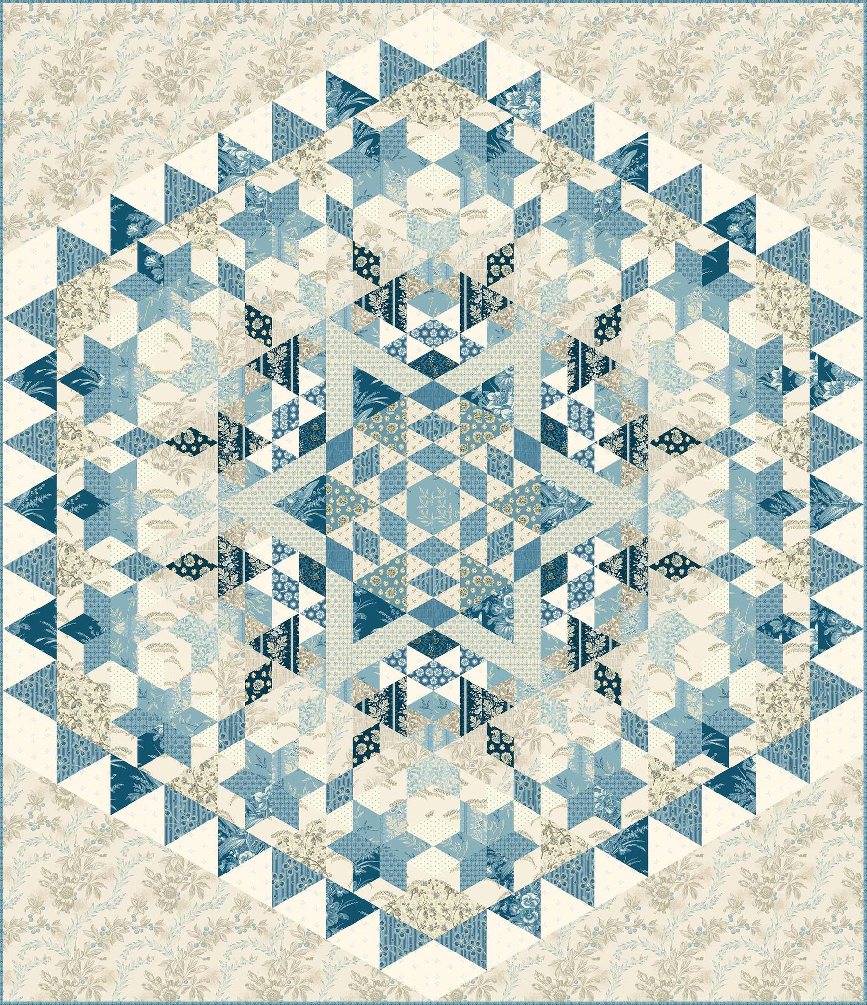 Laundry Basket Quilts Original Pieced Quilt Pattern in our "Cocoa Blue" and "Seabreeze" fabric collections by Edyta for Andover.