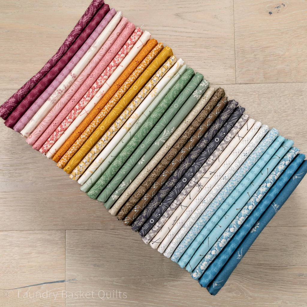 32 fat quarter fabric cuts of Laundry Basket Quilts "Sewing Basket" fabric collection by Edyta Sitar for Andover.
