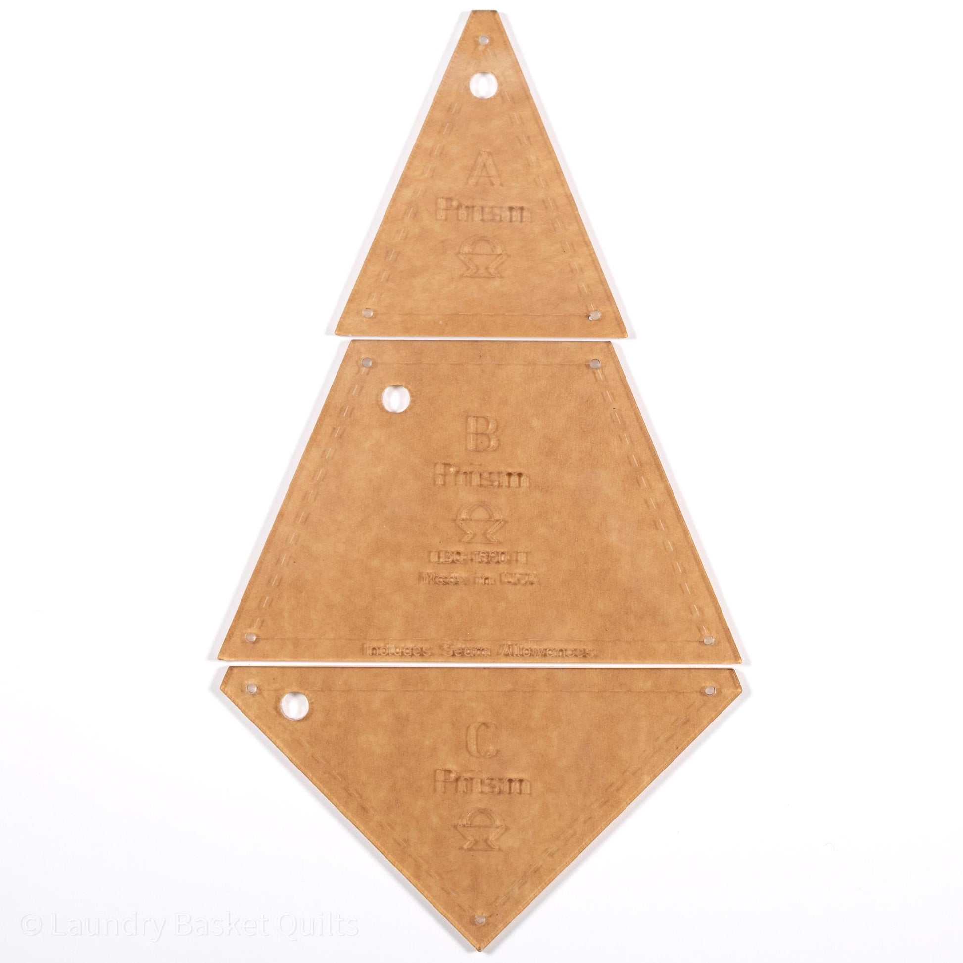 Acrylic Templates for precise cutting and sewing of shapes for our Laundry Basket Quilt patterns - Prism and Little Prism. Templates are marked with a ¼" seam allowance points for easy marking and matching of pieces.