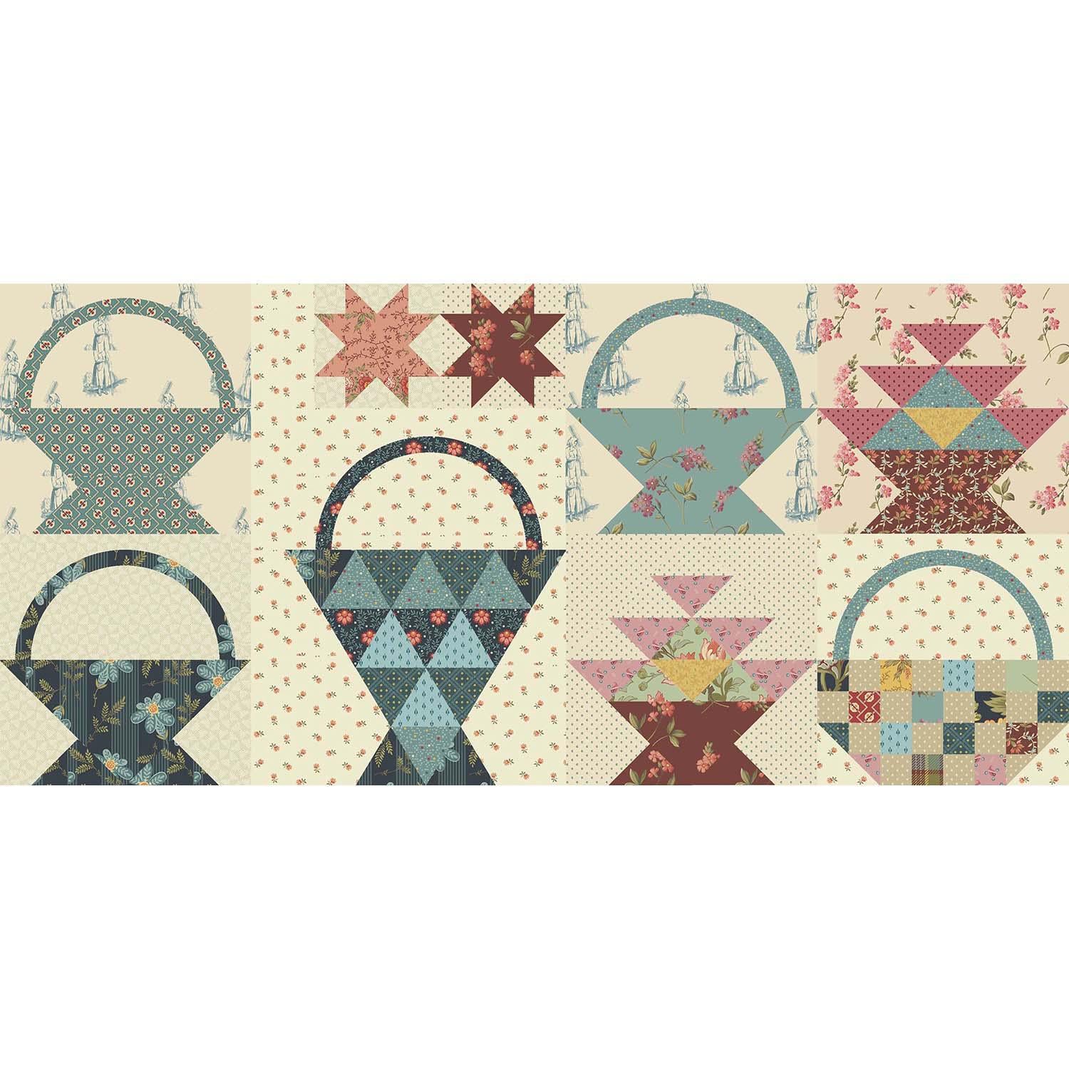 Anna's Baskets Pieced Quilt Block Pattern featuring our "Farmers Daughter" fabric collection.