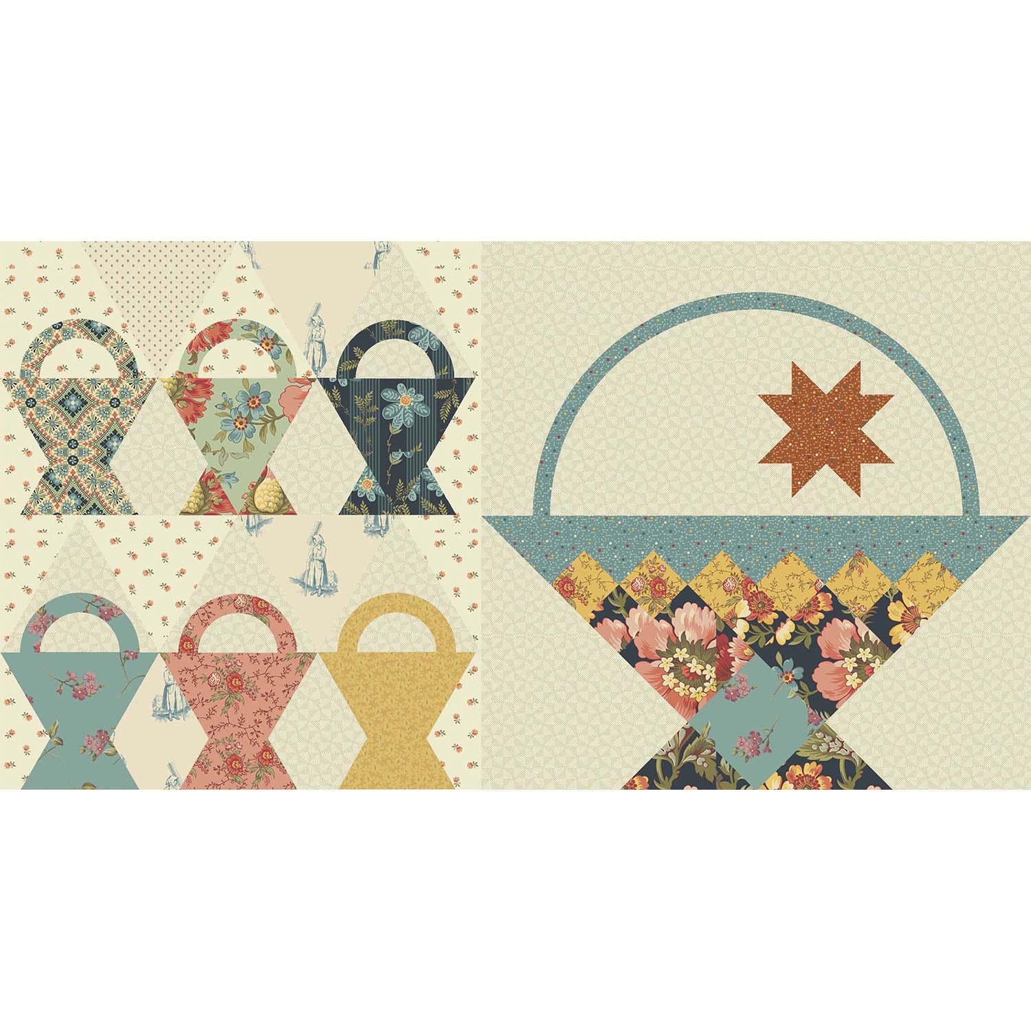 Anna's Baskets Pieced Quilt Block Pattern featuring our "Farmers Daughter" fabric collection.