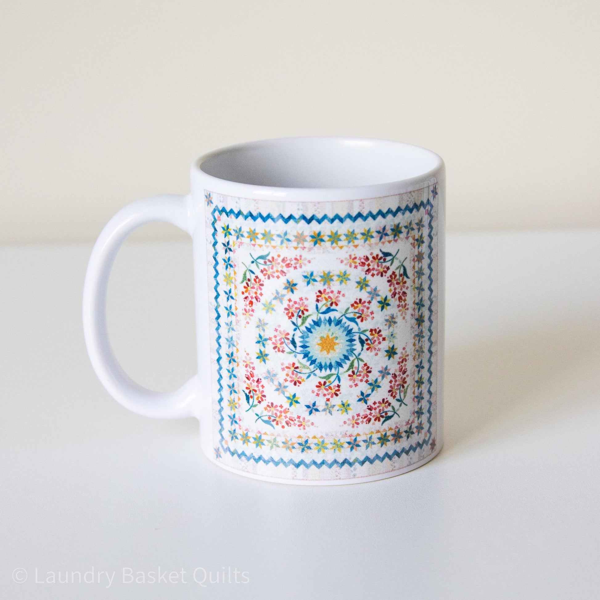 Start your day right with a beautiful Laundry Basket Quilt Mug! These customed ceramic mugs are perfect for your daily beverages like coffee, tea, or hot cocoa or can be used to spruce up your desk holding pencils, pens, scissors, or any notions you love to use! They also make perfect gifts for any occasion. This mug features our stunning Seamstress pattern.Mugs are microwave and dishwasher safe.