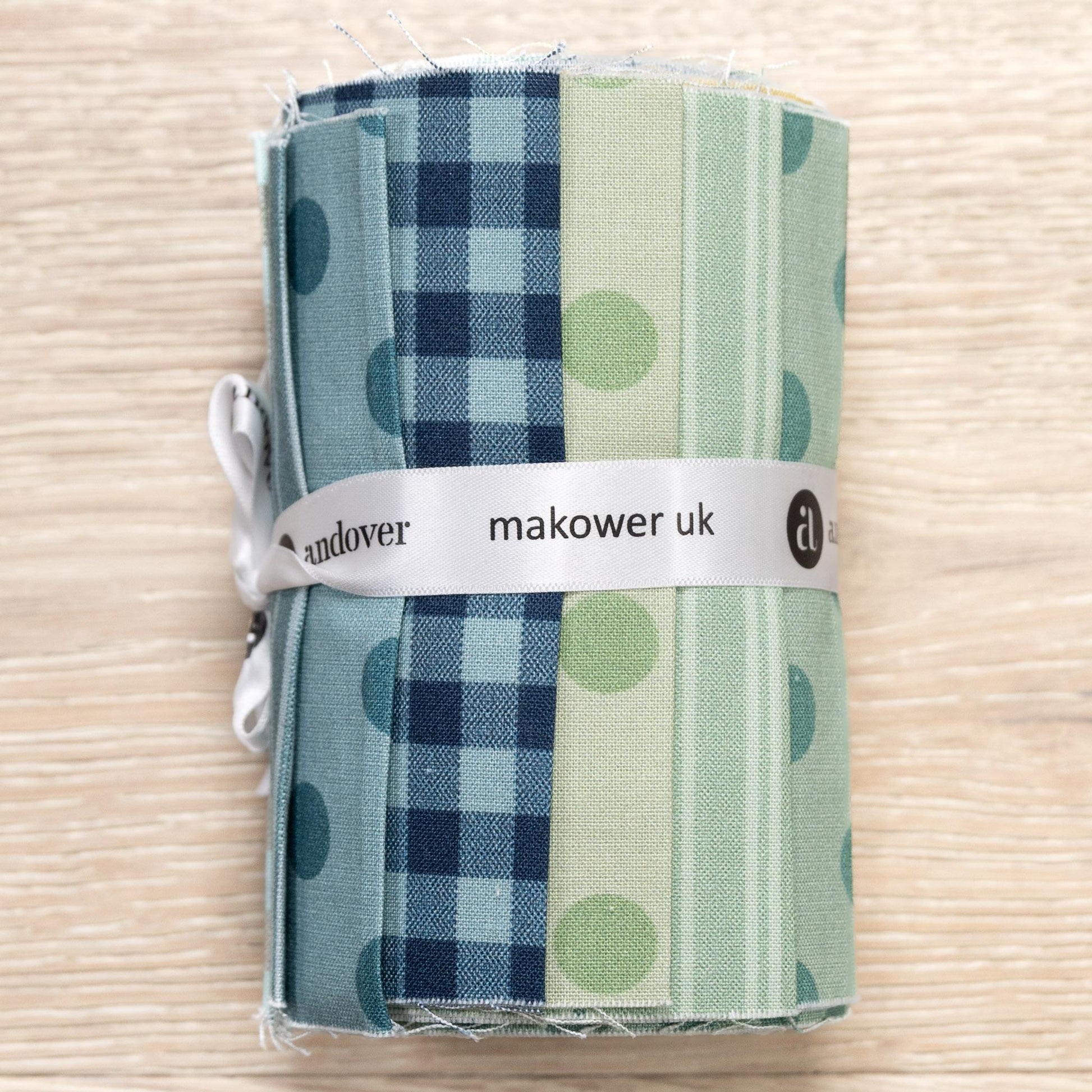 Beautiful selection of 12 fabrics (4.5" X WOF) in a mix of cool prints perfect for any project! Fabrics have been selected from some of Edyta's "Quiltessential" fabric collection for Andover.