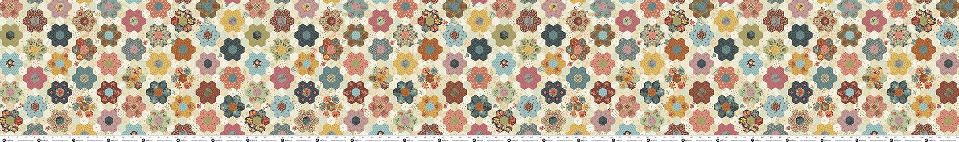 "Sarahs Garden Mini 108s" fabric by Edyta Sitar of Laundry Basket Quilts for Andover. This print is made up of 1/2" hexagons.